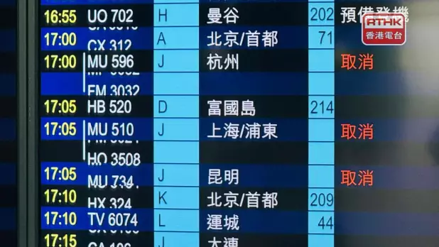 多間航空公司宣布,大量於周日出發或抵港航班將會延遲或取消,其中國泰航空凌晨5時至傍晚6時,往返香港機場的航班將延誤或取消。香港航空有19個航班取消、大部分航班延誤;香港快運就有41對航班取消,大灣區航空亦有1個航班取消,其餘航班延誤。