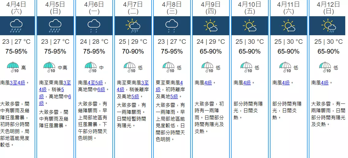 在過去一小時,大老山、橫瀾島及青洲分別錄得的最高持續風速為每小時85、78及64公里,最高陣風分別超過每小時103、96及93公里。