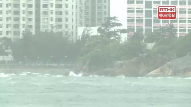 十號颶風信號生效下,鯉魚門海面有湧浪。(陳永祥攝)