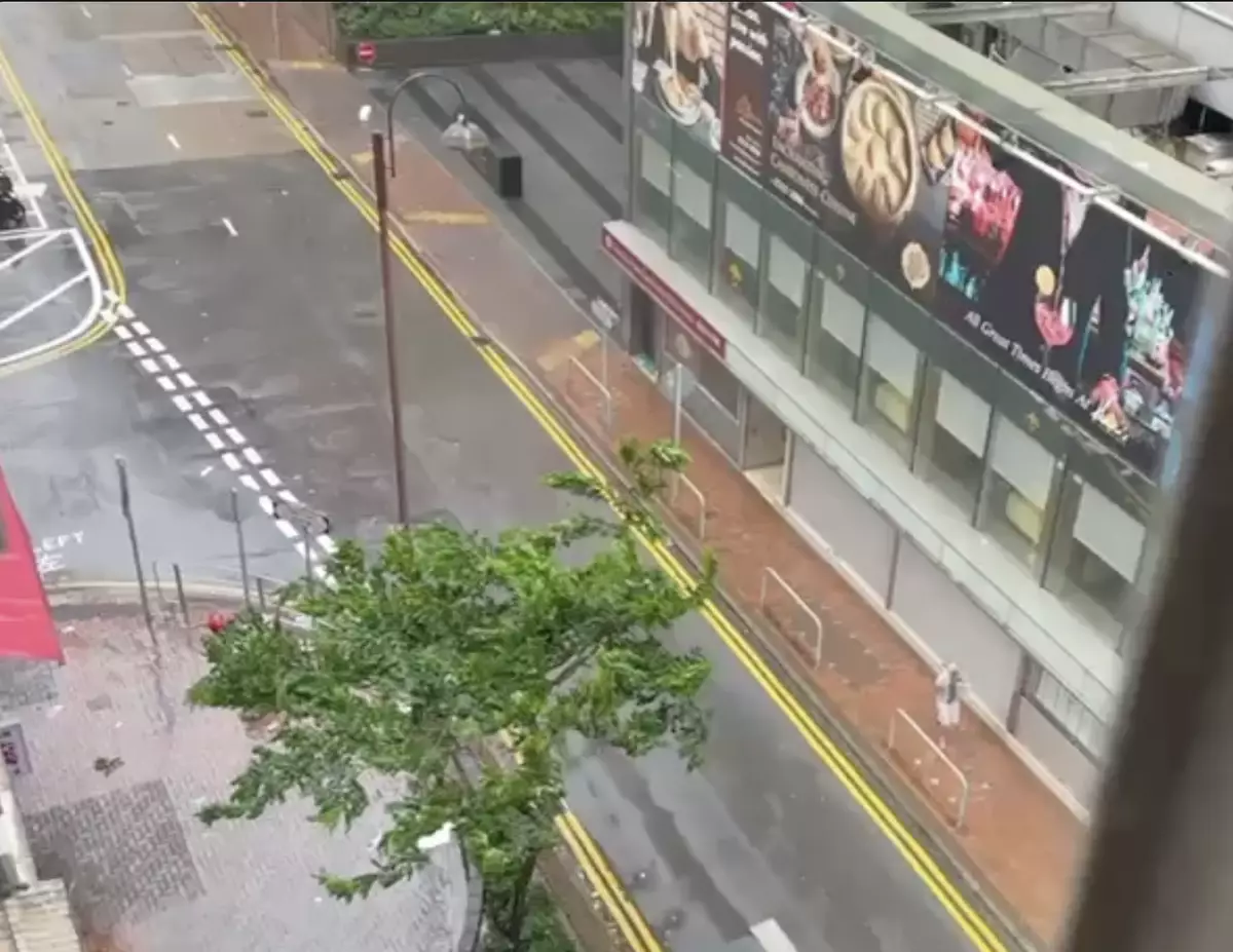 在市區,大雨和烈風甚具威力,不少路邊的樹木被吹至東歪西倒,街上亦甚少行人經過,平時熱鬧的尖沙咀摩地道顯得冷清。