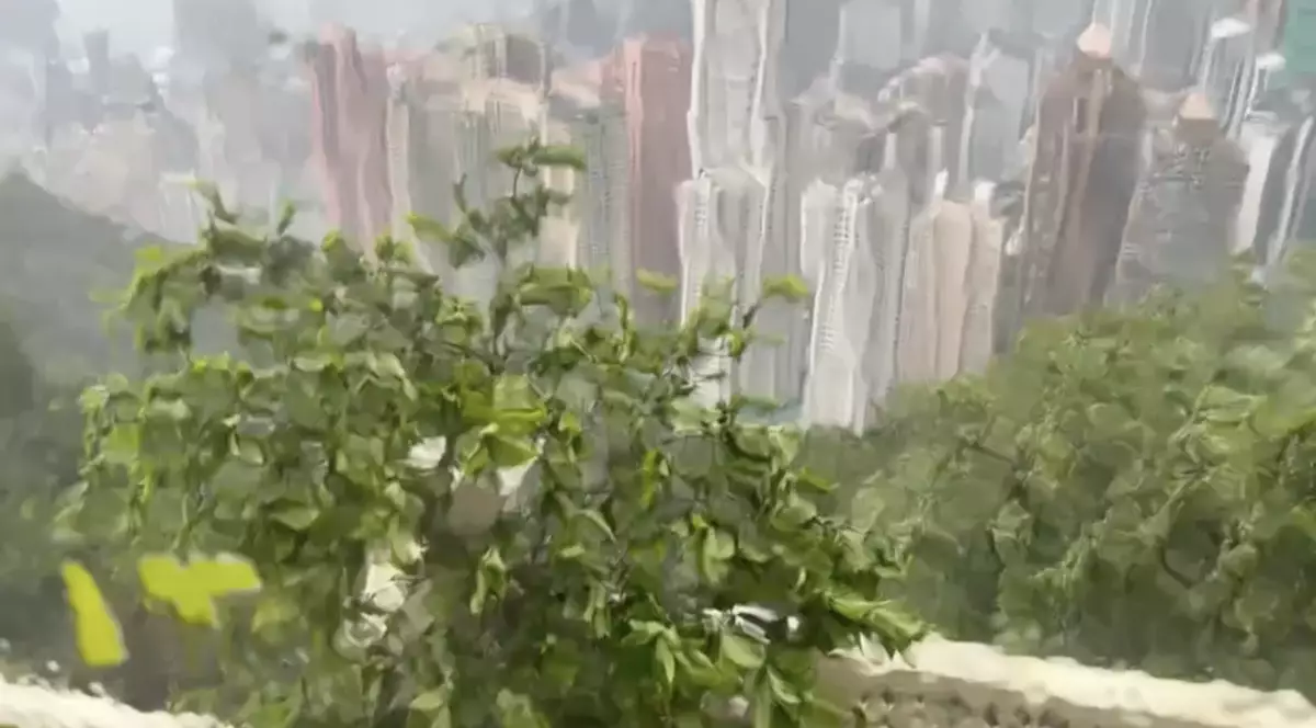 在港島,山頂的風力強大,樹木被吹到瘋狂搖晃,伴隨呼嘯的風聲和密集的雨聲,甚為驚人。