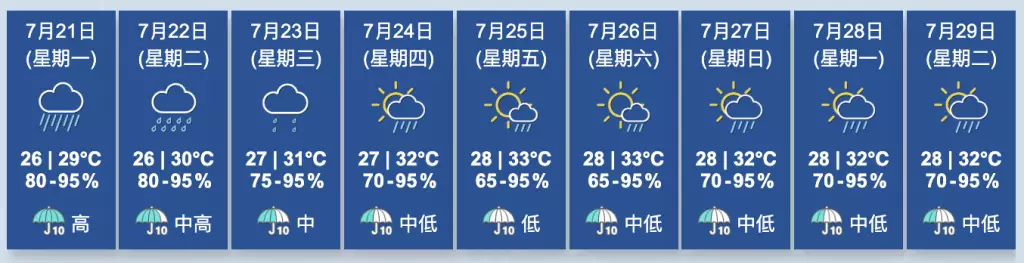 預料本港地區星期六漸轉天晴,但初時有一兩陣微雨。日間乾燥及溫暖,市區最高氣溫約25度,新界再高兩三度。吹和緩東至東北風。