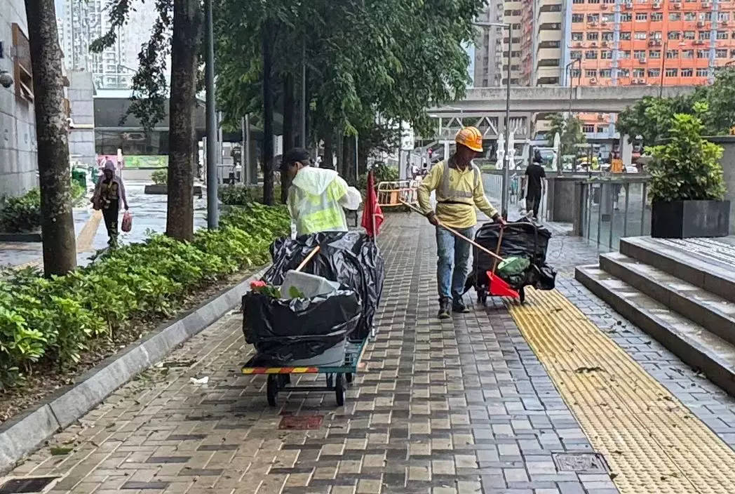 颱風過後,清潔工人忙於清理街頭。巴士的報記者攝