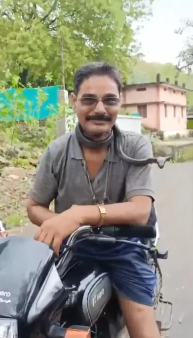 據當地媒體報導,印度中央邦古納地區一名35歲蛇類救援義工馬哈瓦爾(Deepak Mahavar),本月14日為趕接提早放學的兒子,竟將剛捕獲的劇毒印度眼鏡蛇掛在頸上騎電單車前往學校。