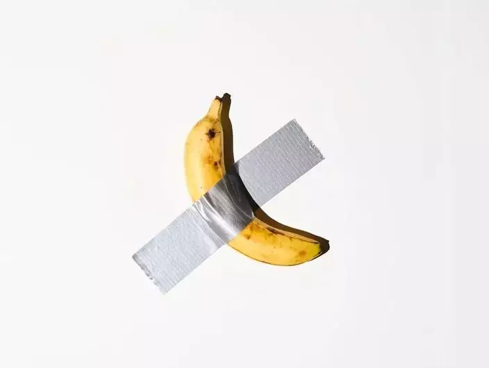 意大利藝術家卡特蘭(Maurizio Cattelan)的這件作品將一隻香蕉以膠帶貼在牆上,命名為「喜劇演員」(Comedian)。這件挑釁意味十足的作品去年在美國紐約以620萬美元價格售出。