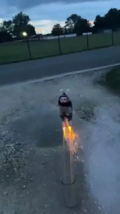 影片中,Albrecht和朋友一同操作,將3枚煙花綁在Labubu玩偶底部,然後在空地點燃。Labubu一開始直線升空,但突然在空中停頓,進行了一個90度的轉向,看起來像導彈一樣直衝向人群,煙花隨後爆炸,讓人們驚恐地躲避。
