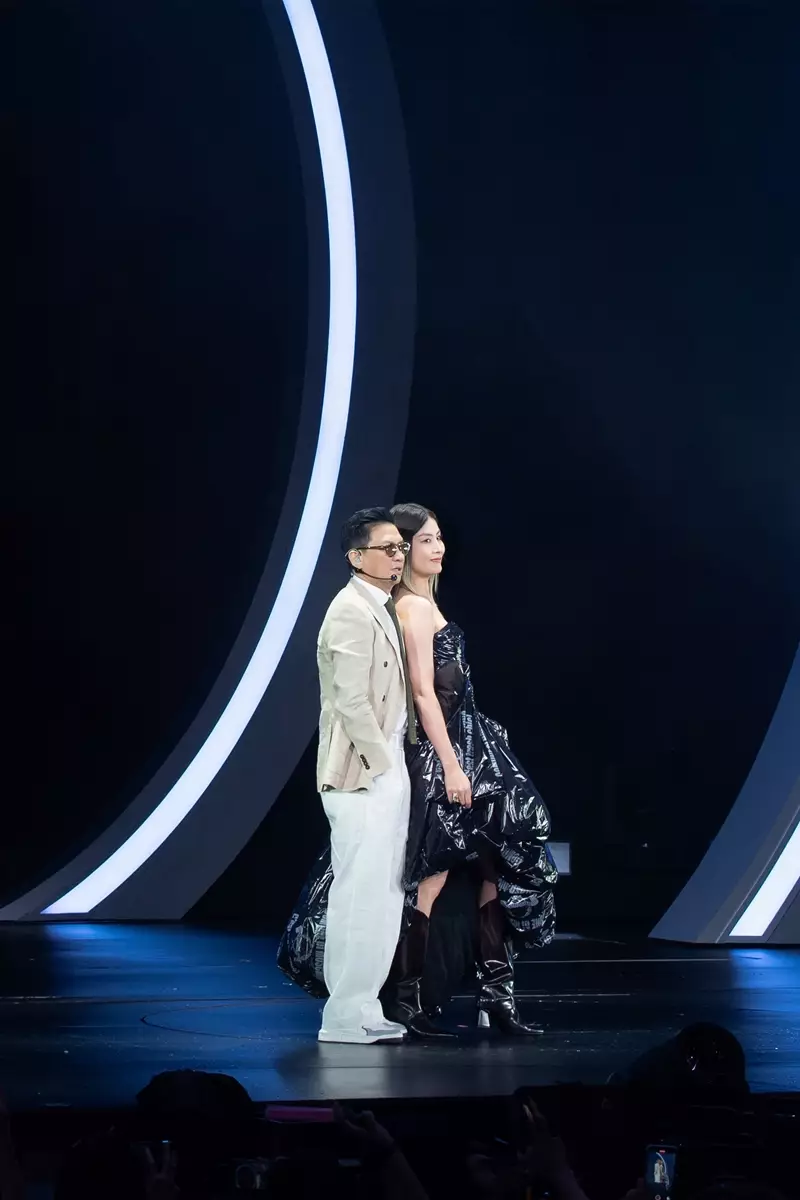 Kelly上次為家輝宣傳電影《贖夢》時,一身垃圾黑膠袋「垃圾婆」造型現身力挺。這次輪到Kelly主場,她特別換上一襲黑色定制「垃圾膠袋」晚裝隆重歡迎家輝。家輝笑稱:「十年前演唱會我喺到,十年後我又係到,希望十年再十年你演唱會,我都可以參與下,到時候可以拉二胡、彈琵琶助興。」家輝更自稱昨晚一身打扮,一眼就看出是唱作歌手,Kelly聽後卻調侃道:「唔係喎!大家封你做『電影歌手』!專係電影入面唱歌。」令家輝即時慨嘆:「傷口灑鹽時間又嚟!」