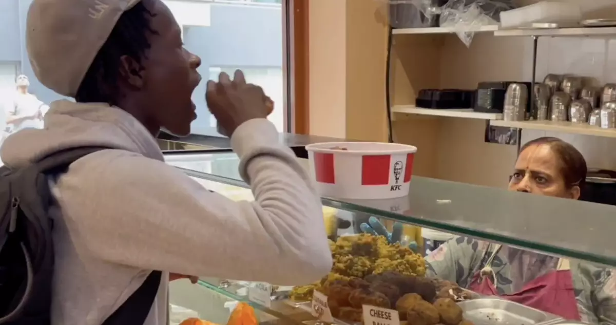 綜合外媒報道,英國倫敦一間隸屬國際奎師那意識協會(ISKCON)的素食餐廳近日發生一宗令人側目的事件。一名非裔年輕男子在確認餐廳只供應素食後竟取出一桶炸雞,當眾在店內大快朵頤,荒唐舉動隨即引起店員及其他顧客的不滿,最終被要求離開,相關畫面在網上引發熱議。