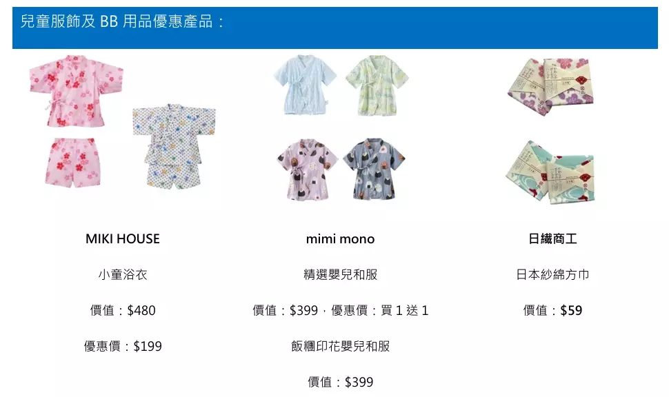 另外,mimi mono的精選嬰兒和服,以柔軟親膚的布料製成,為嬰兒提供最溫和的呵護。現推出買一送一優惠,原價$399。誠邀您前來選購,為寶寶配搭充滿日系風情的夏日裝扮。