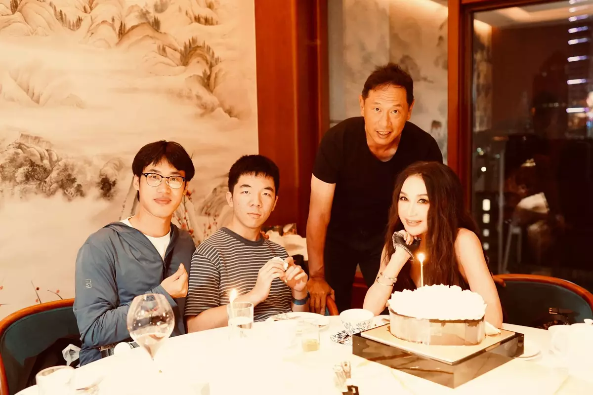 溫碧霞與老公Kenny、兒子Xavier、助手一齊晚飯食生日蛋糕。
