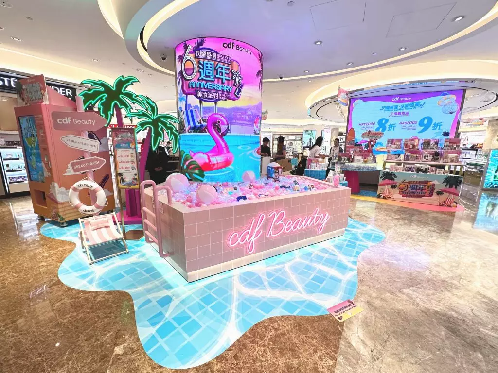 cdf Beauty 東薈城門店更特設夏日派對主題佈置,化身成為潮人必到的打卡地,歡迎所有美妝愛好者前來參與試妝拍照等活動,投入這場只此一次的盛夏美妝盛會。