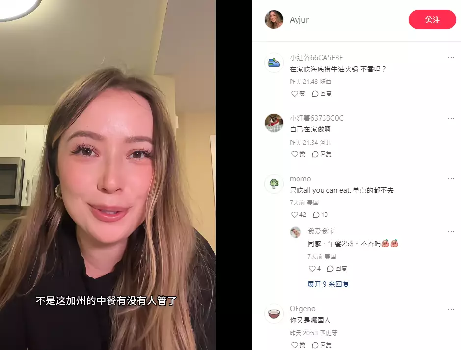 也有不少人從實際經驗出發,建議「還是在家吃吧」、「買個切肉機在家吃一樣爽」,認為外食火鍋不僅貴、還可能造成腸胃不適,更有人表示中式餐點早已不再是平民美食,「吃個烤魚餐廳都要160美元」、「一份炒土豆絲也要16美元」。