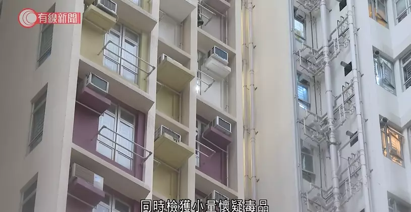 警員在其單位內檢獲一支連接著懷疑含有液態依托咪酯煙彈的電子煙槍及小量其他懷疑毒品。有線新聞影片截圖