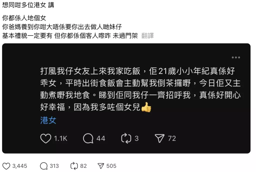 沒想到帖文一出,就有其他網民看不過眼,更即時發帖勸各位港女不必過度討好男方家庭,直言:「你都係人地個女,你爸媽養到你咁大,唔係要你出去做人哋妹仔」,強調保持基本禮貌即可,但未過門前始終是客人身份。