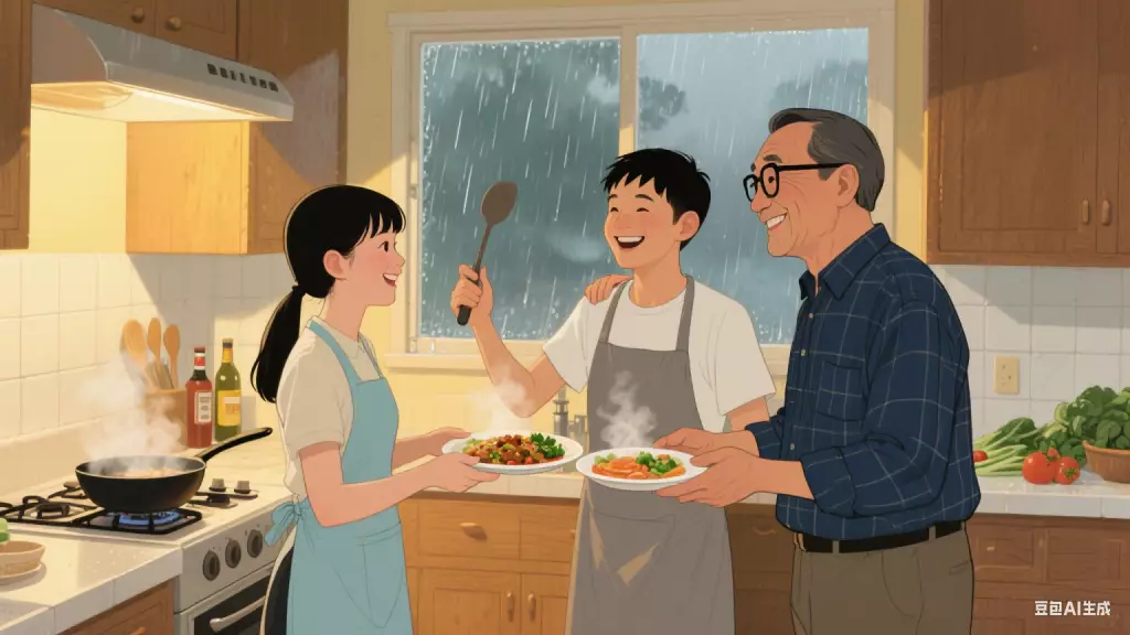 有網民發帖分享,打風當日自己兒子女友冒雨到家中作客,不僅親自下廚,更與兒子一同「招呼」自己,令事主感動直呼「多咗個女」。AI生成圖