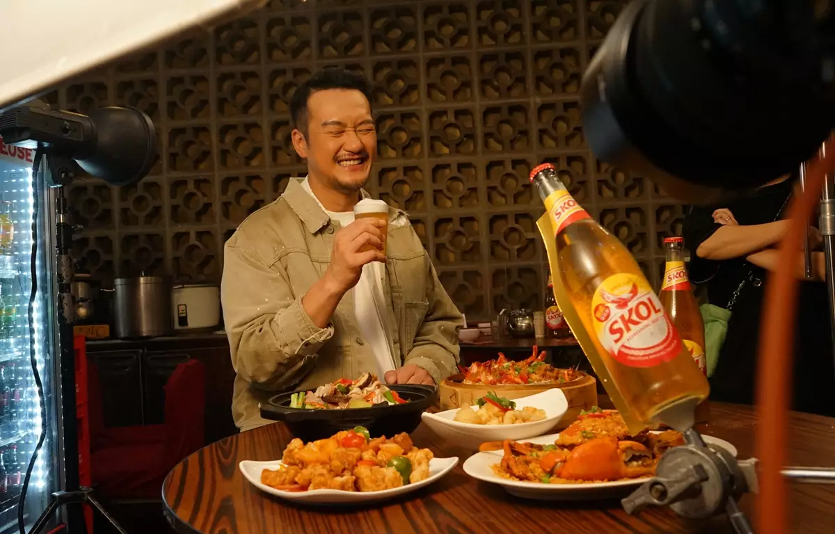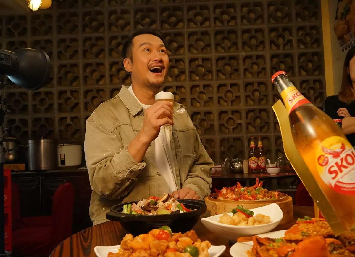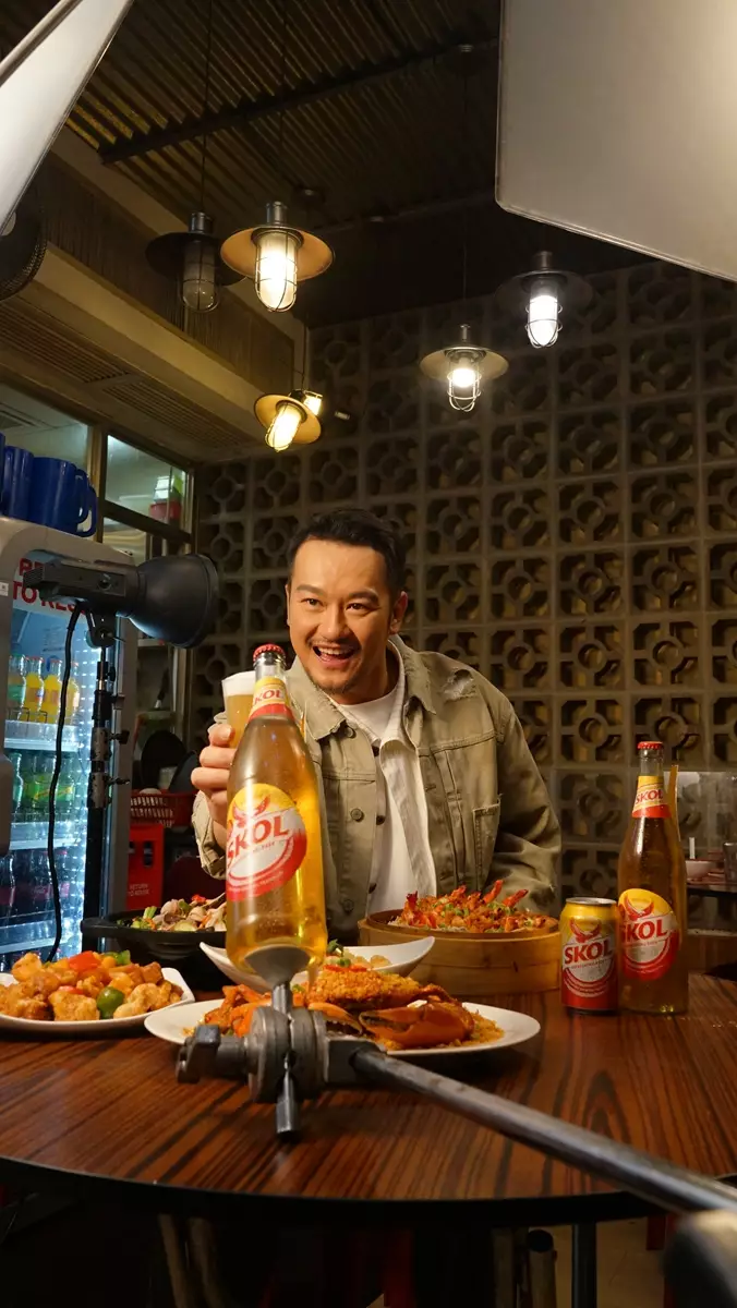 為配合今次廣告「放工啤點都係獅威」的主題,製作單位特別安排一間港式餐廳作為廣告場景,現場還 準備了多款特色的大排檔鑊氣小炒和冰凍的SKOL獅威啤酒,完美呈現放工飲返杯的輕鬆氣氛。Deep表示:「講真飲啤酒真係難我唔到,估唔到今次最難係要忍口,廣告拍攝以為啲嘢食全部係道具,但見啲餸全部都熱辣辣、香噴噴,先知道大廚原來全程Standby,roll機前先即炒碟餸出嚟拍,面對住美食同啤酒呢個絕配,對於最近keep緊fit嘅我真係忍得好辛苦,但為咗拍攝效果,唯有犧牲小我,哈哈,攞正牌又飲又食,真係爽到爆啊!」