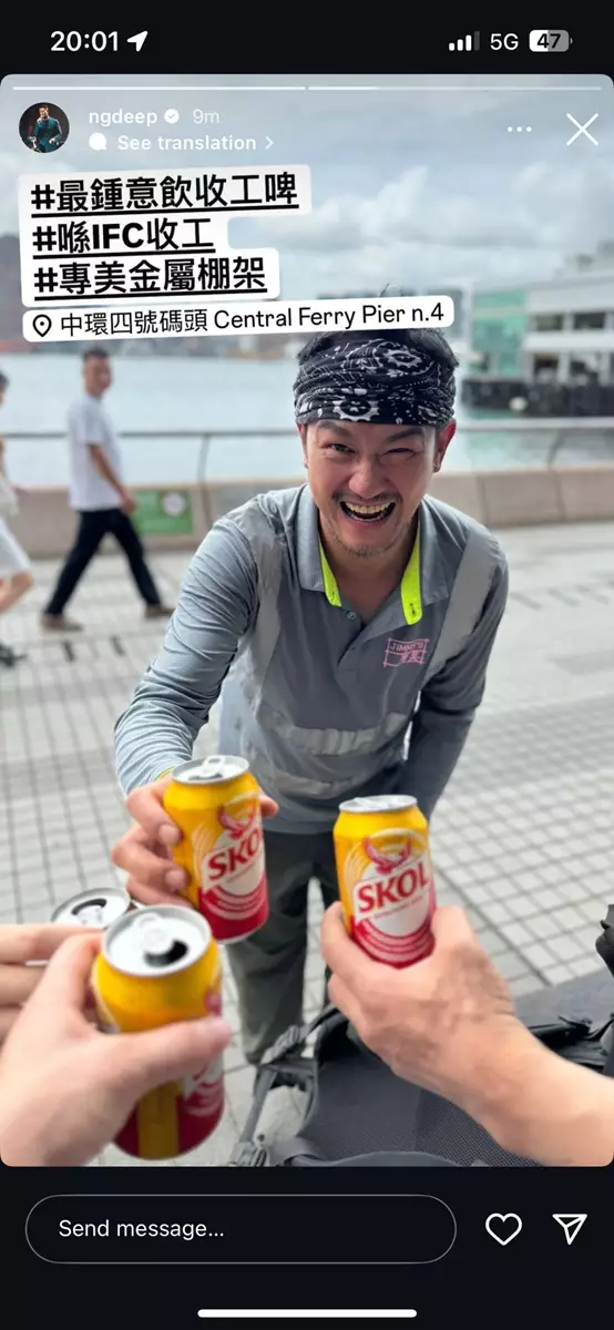 為了向一眾身邊的朋友、同事推薦這款性價比極高的啤酒, Deep更揚言會自陶腰包萬歲,收工時請大家齊齊歎杯放工啤,鬆一鬆。Deep:「呢排天氣咁熱,我哋戶外 工作有時都幾攞命,所以收工都會同啲同事搵個地方嘆下冰凍啤酒,收工飲幾杯,真係好爽,充充電!」