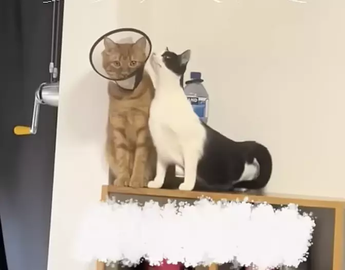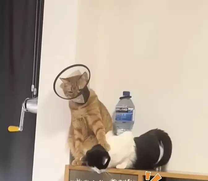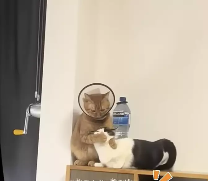 終於忍無可忍的橘貓,伸出肉掌直接摀住乳牛妹的嘴巴,試圖阻止那沒完沒了的尖叫。這個「真心換絕情」的意外互動,瞬間成為全片最爆笑的片段,也讓飼主忍不住錄下這一幕。