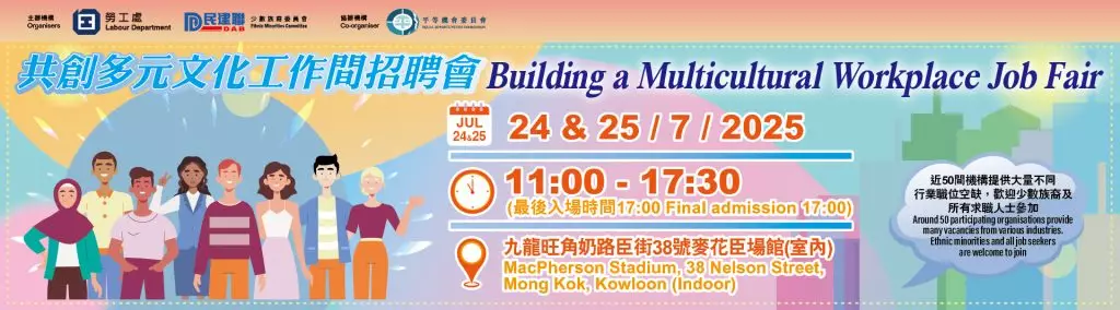 勞工處本周四及周五在旺角麥花臣場館舉行共創多元文化工作間招聘會,約50間機構參加,提供超過2300個職位空缺,每日分別約有25間機構於會場設置櫃位,進行即場招聘。