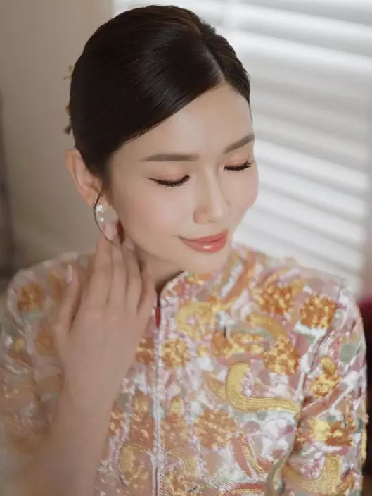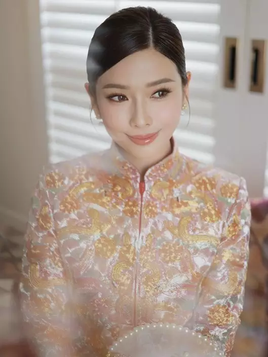 她更於社交平台分享當日穿上傳統中式裙褂的造型