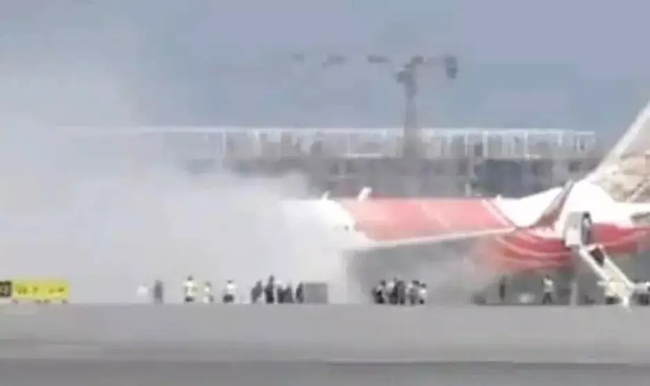印度航空一個從香港飛往印度首都新德里的航班,在機場降落後起火。網上圖片