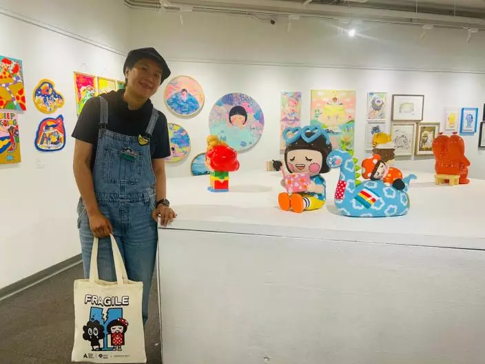 麥雅端的角色「法天娜」在此次展覽的盲盒人偶中亮相,把個人創作融入市場推廣,她表示她的團隊在後勤、授權與商業運營上提供了巨大幫助,讓她能專注於創作與策展。