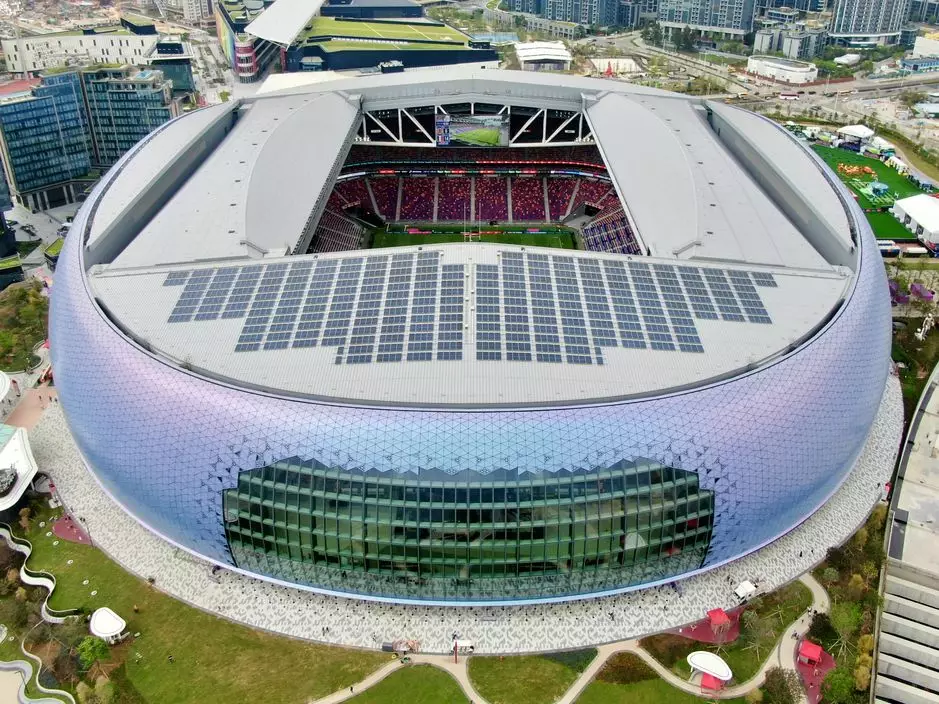 體育園引入綠建築元素,包括在建築物屋頂區域覆蓋太陽能板,用作提供熱水和電力,有效減少建築物能源使用量。體育園提供圖片