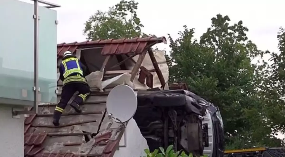 失控衝入花園撞飛男童 德國私家車離奇插在約3米高穀倉屋頂