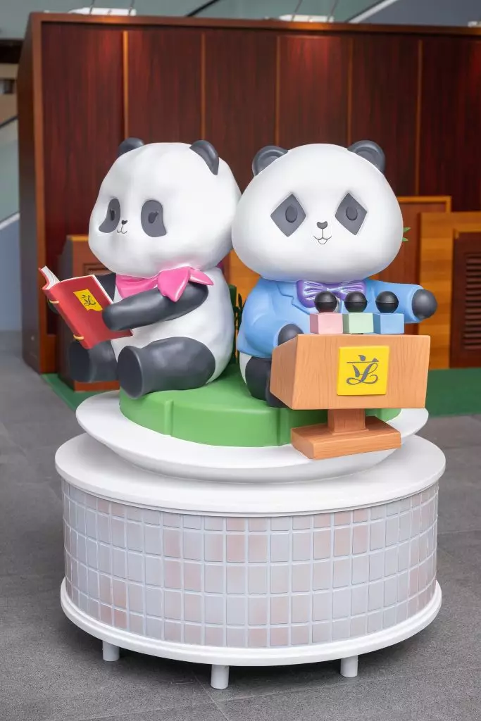 有立法會元素的一對大熊貓雕塑今日起在立法會大樓地下長期展出。FB圖片