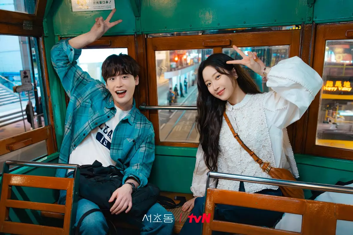 李鍾碩、文佳煐坐上「叮叮」電車。tvN Drama圖片