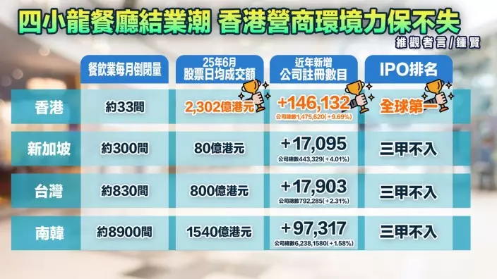 因應全球經濟多重挑戰,「亞洲四小龍」香港、新加坡、台灣及南韓面對經濟波動乃不爭事實 – 餐廳結業潮實非香港獨有。