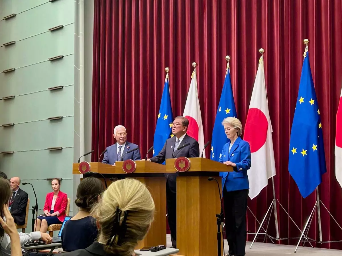 日本首相石破茂與到訪的歐洲理事會主席科斯塔,以及歐盟委員會主席馮德萊恩會面,雙方同意建立「競爭力同盟」,加強經濟安全保障和產業的合作。