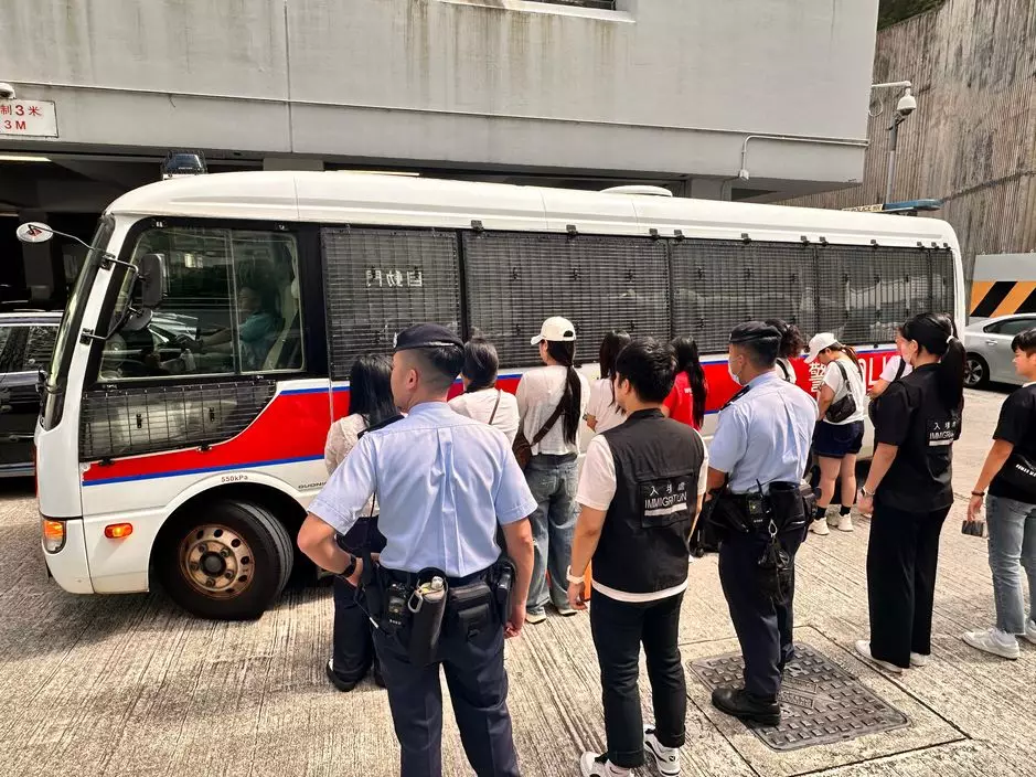 警方於荃灣市中心一帶進行掃黃行動,拘捕10名內地女子懷疑進行賣淫活動,涉嫌「違反逗留條件」。警方圖片