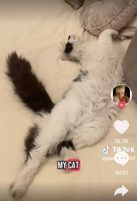 影片可見,一隻黑白花紋的小貓翻肚熟睡在黛博拉的床上,完全不受外界干擾。黛博拉指出,這隻小貓名為米洛(Milo),是同一條街盡頭的鄰居所飼養。由於她家也飼養了兩隻貓貓,所以米洛時常跑來「串門」與她的寵物玩耍,猜測是前一晚悄悄溜入家中,最終在床上沉沉睡去。