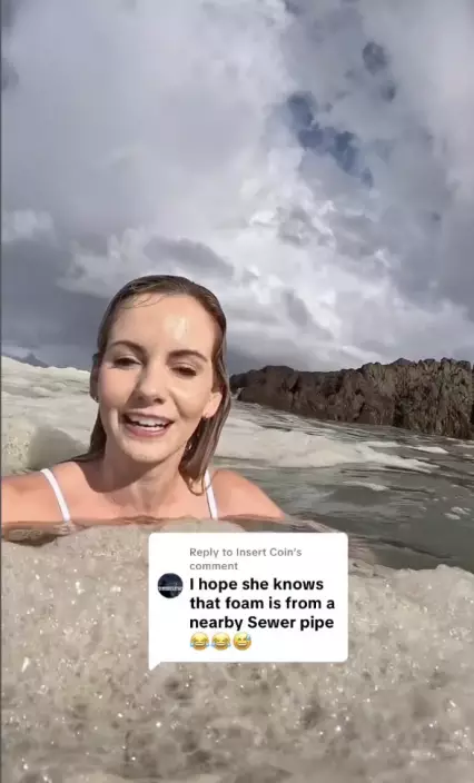 南非女網紅混濁海灘暢泳期間還飲下海水,戲水影片曝光後被網民告知誤入「污水海域」勁錯愕!