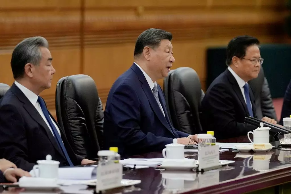 習近平在北京人民大會堂,會見歐洲理事會主席科斯塔,以及歐盟委員會主席馮德萊恩。新華社圖片