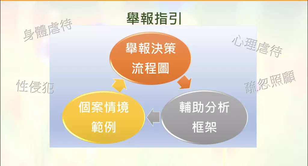 《指南》協助有關人士,若遇到懷疑兒童遭受身體虐待、心理虐待、性侵犯和疏忽照顧時,判斷是否需要強制舉報。
