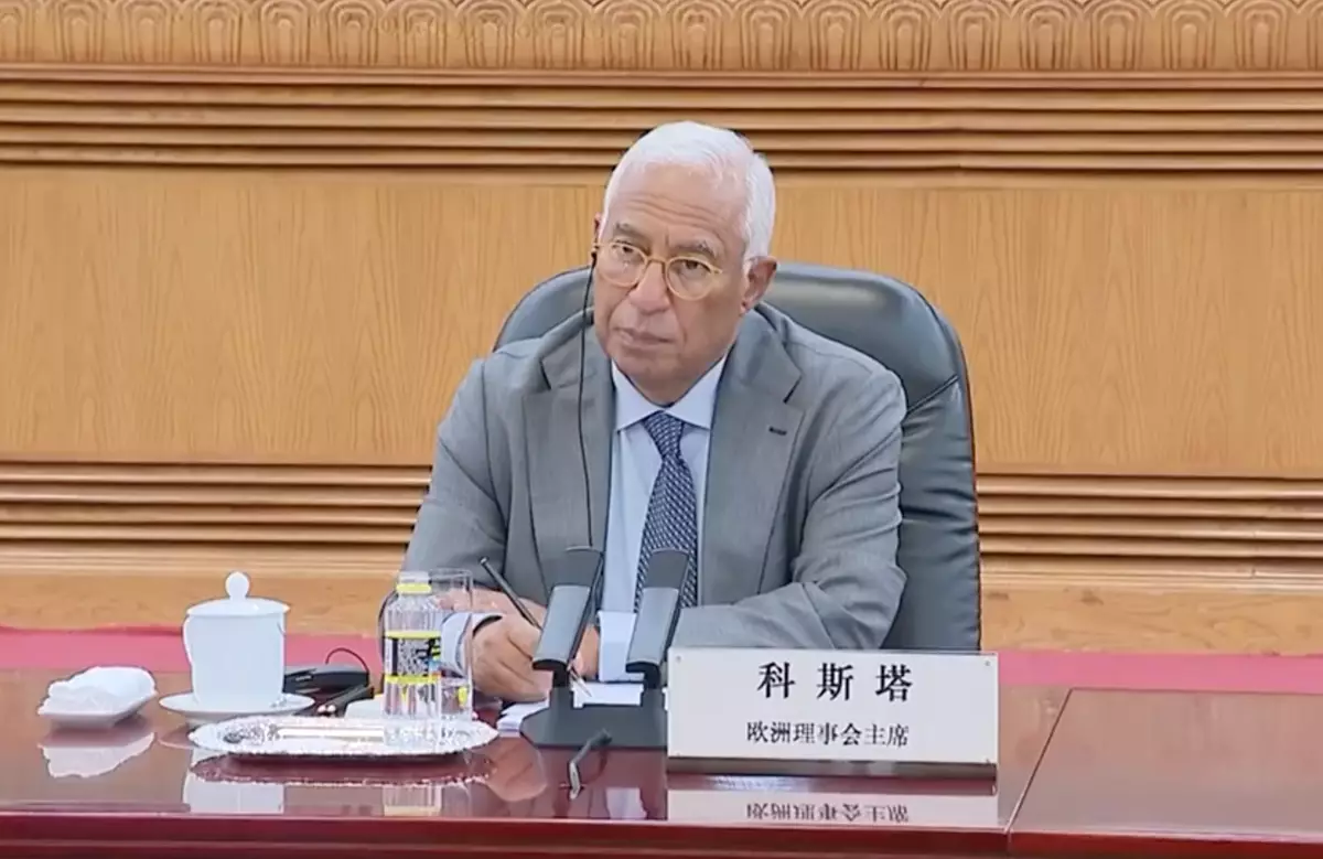 科斯塔出席第25次中國-歐盟領導人會晤中。央視截圖
