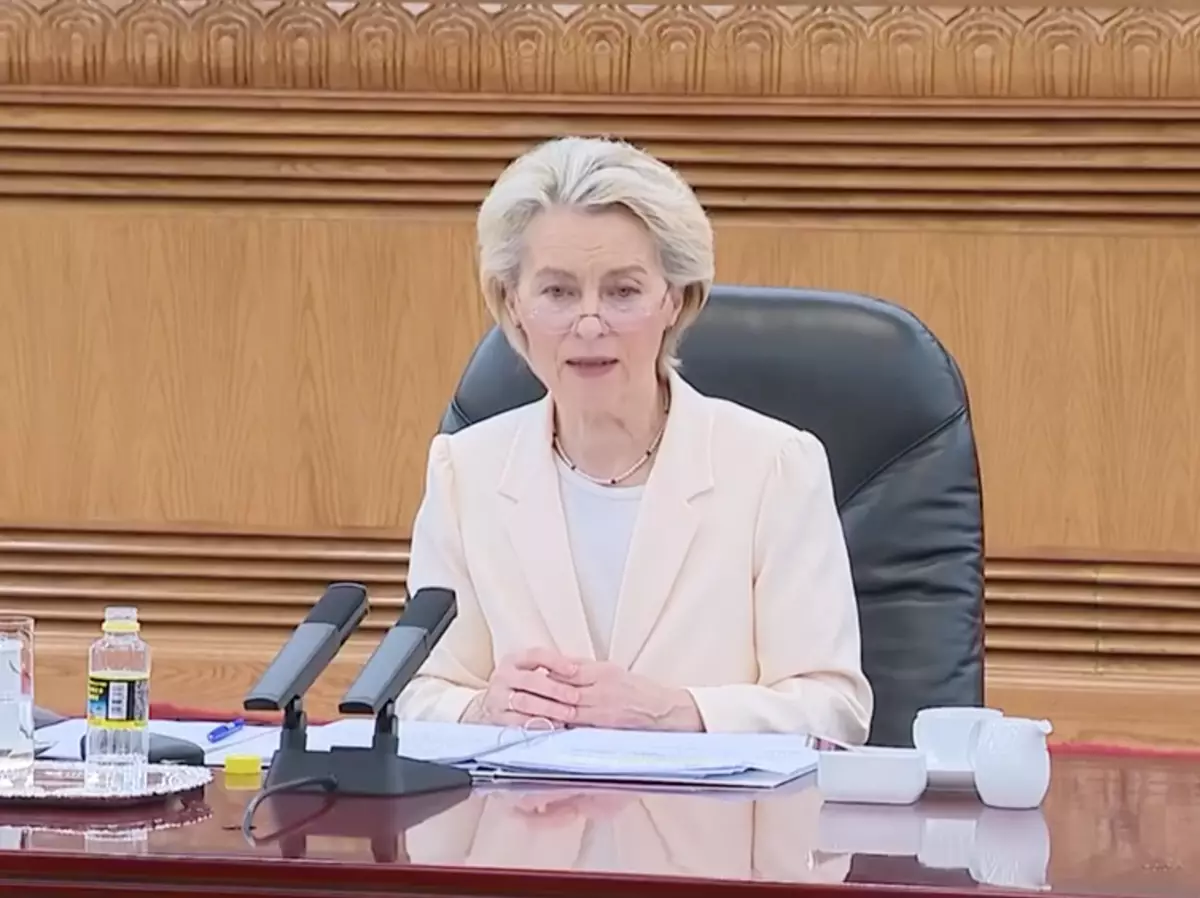 馮德萊恩在第25次中國-歐盟領導人會晤中發言。央視截圖