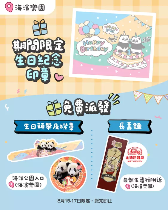 把握機會參與 8 月 15 日大熊貓龍鳳胎盛大生日派對