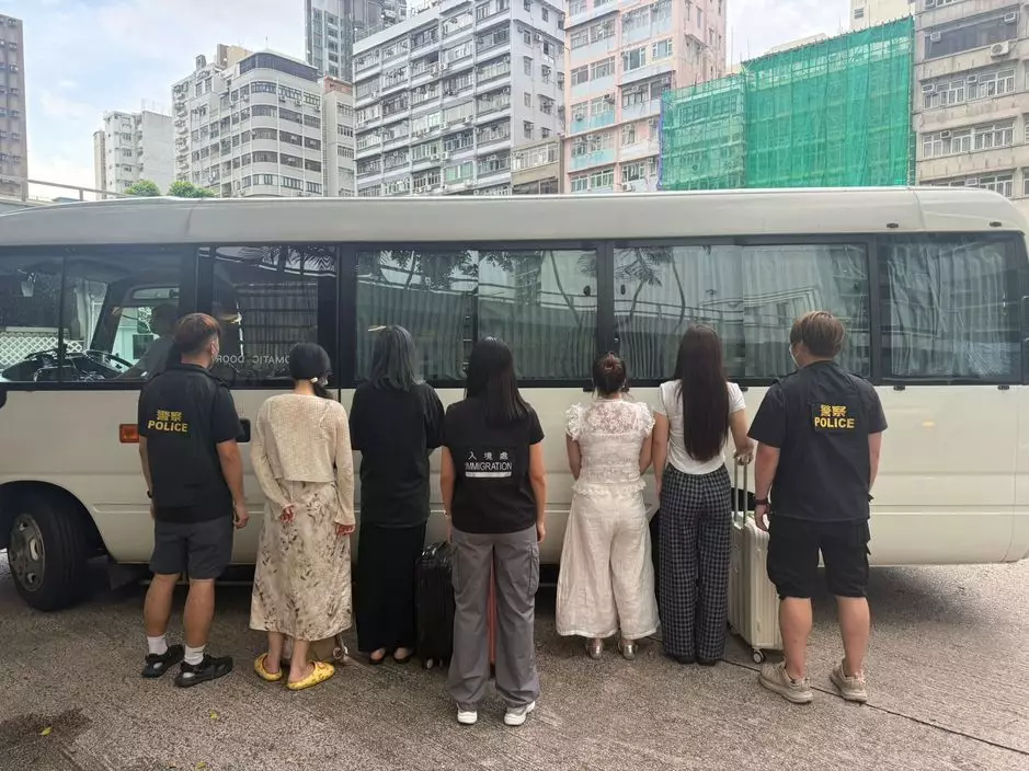 行動中,警方共拘捕8名內地女子及1名外籍女子,年齡介乎18至43歲,分別涉嫌「違反逗留條件」及「逾期居留」。所有被捕人現正被扣留調查,部份被捕人稍後將交由相關部門跟進。