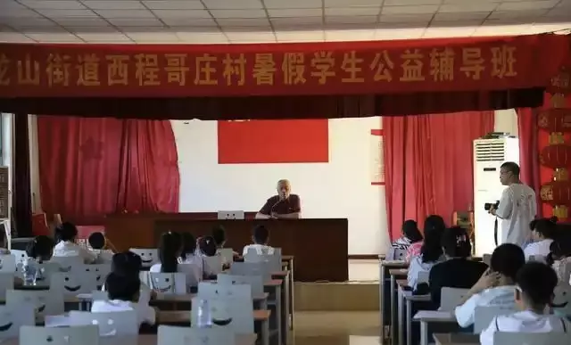 2006年,退休多年的江敦仁校長眼見村內孩童暑假期間無所事事,四處亂跑,既影響學習又存在安全隱患,於是萌生了舉辦免費暑託班的念頭。在西程哥莊村村委的支持下,他帶領幾位志同道合的退休教師,在村文化大院裡辦起了第一屆公益輔導班,當年參與的學生只有十幾人,幾張簡陋的桌椅便是他們的課堂。20年來,江敦仁校長的堅持與付出,令公益輔導班從一間小小的課堂發展成如今惠及逾千名鄉村兒童的公益項目。輔導班自創辦以來,從不收取學生任何費用,始終保持著純公益的性質。