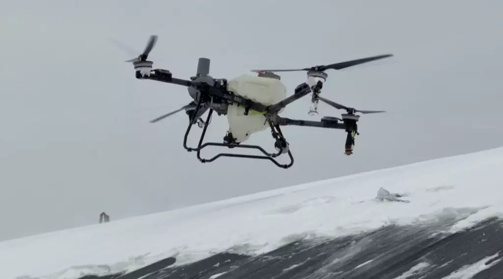 由5G新多媒體和北京研發團隊共同研發的一款用於 「5G 360 」直播無人機的其中一款 。巴士的報記者攝