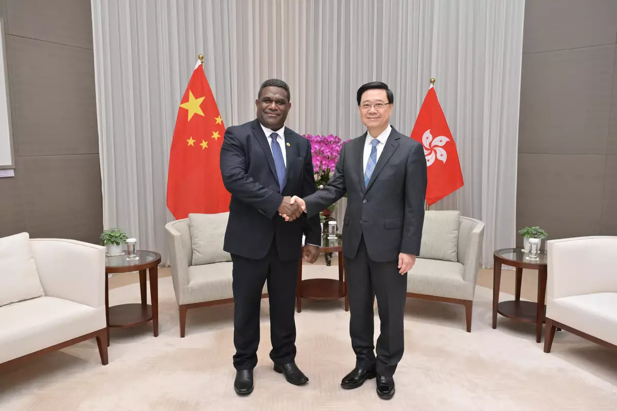 行政長官李家超與瓦努阿圖副總理兼財政部長約翰尼·科納坡會面。政府新聞處圖片