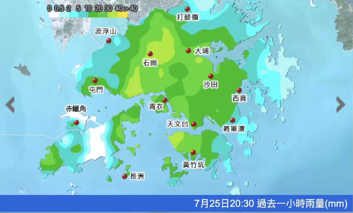 香港天文台較早前表示香港廣泛地區已錄得或預料會有每小時雨量超過30毫米的大雨,且雨勢可能持續。
