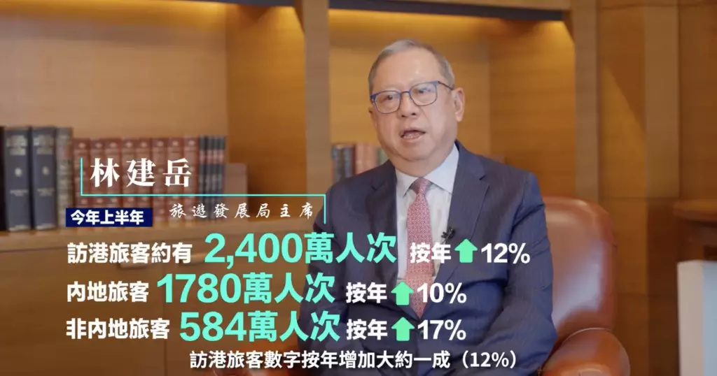 行政長官李家超表示,政府推動打造「旅遊熱點」項目,今年上半年錄得約2400萬訪港旅客人次,按年增加12%,反映香港在國際旅遊市場的吸引力不斷增強。