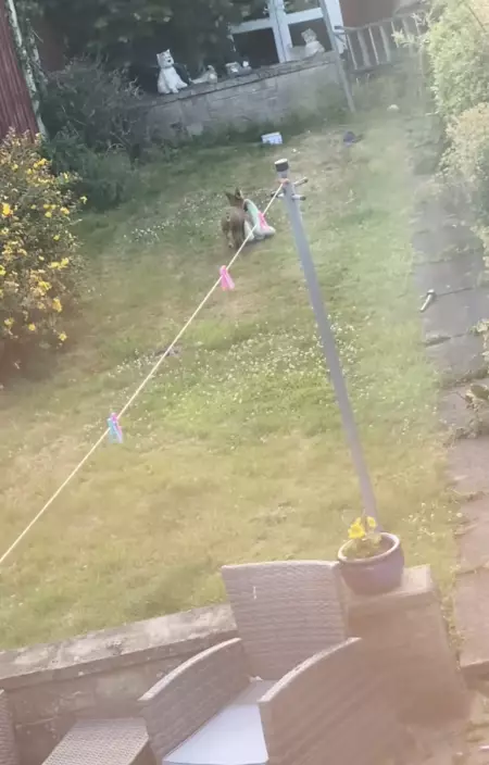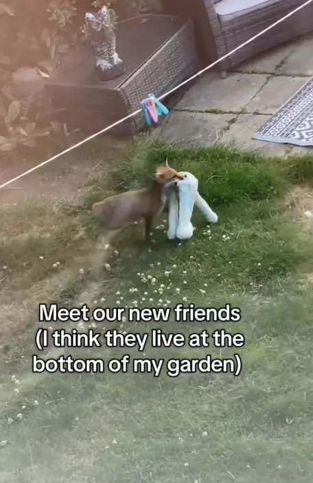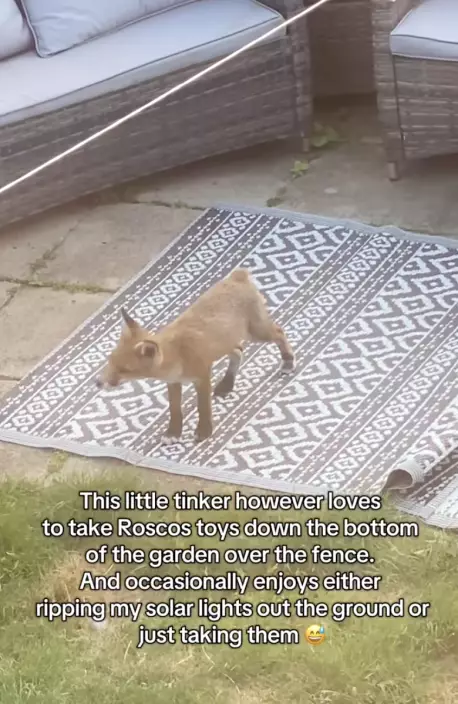 影片可見,小狐狸於凌晨時分悄悄潛入院子,緊接著叼著狗狗的玩具及坐墊興奮地在院中四處玩耍,宛如進入「遊樂園」一樣。女子笑稱:「來看看我的新朋友(我想牠就住在我家的花園角落),我叫牠Stumpy,牠很喜歡凌晨來偷走我家狗狗Rosco的玩具來玩。」此外,她發現院子不只一隻狐狸,更曾目睹狐狸媽媽帶著2隻幼狐造訪。