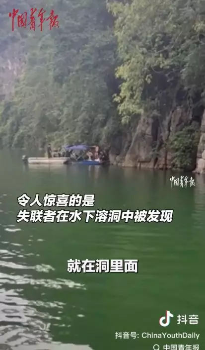7月24日下午,救援人員在一處水下溶洞內成功尋獲及救出王男。現場目擊者指出,事發河流水深達數十米,洞口位於水下約9米處,並橫向延伸至山體數百米。多支救援隊伍日以繼夜搜索,最終鎖定溶洞具體位置。廣西百色特警洞潛隊潛入逾百米後,在一處氣室內發現被困王男。
