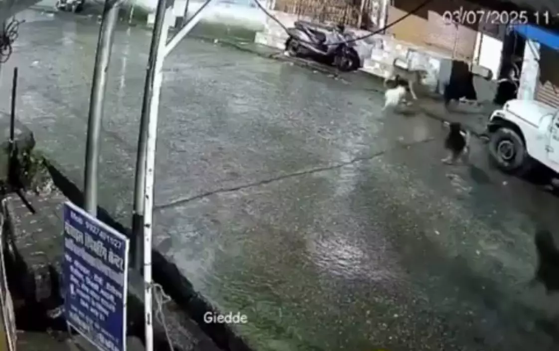 印度一群流浪狗街上遇野豹誤當成「野貓」追趕,進入巷子後才驚覺大禍臨頭慌忙逃生,其中一隻狗狗疑不幸犧牲。