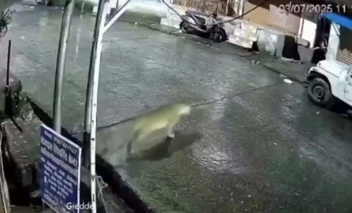 日前,一名帖主「@gharkekalesh」在社交平台X上發佈影片分享,一隻野豹闖入居民區遭街頭一群流浪狗誤認成大貓,瘋狂追逐的畫面。影片可見,野豹在街道上快速奔跑,隨後橫過馬路衝進小巷。期間,路上9隻流浪狗見狀誤以為野豹是野貓,紛紛尾隨進入巷子。
